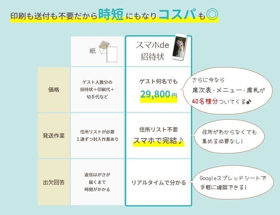 そんなゲストと新郎新婦のモヤモヤが、このスマホde招待状で解決できます。