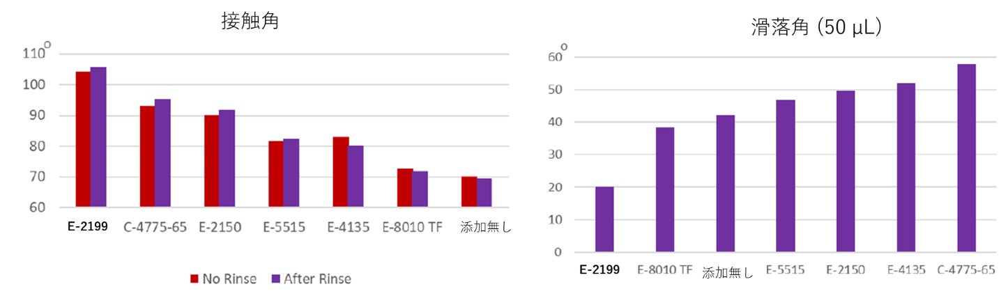 図1 Siltech® E-2199と他エマルジョンの接触角と滑落角