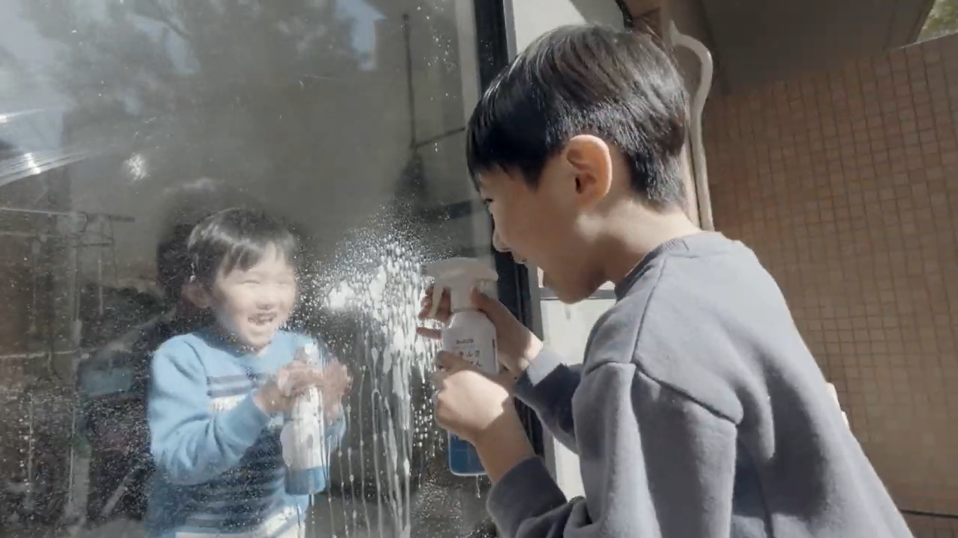 「シャボン玉浴用」のほか、「洗濯用せっけんシャボン玉スノール」「シャボン玉せっけんハミガキ」「ふきふきせっけんバブルガード」「台所用せっけん泡タイプ」「全身ケアソープバブルガード」「手洗いせっけんバブルガード」「純せっけん洗顔泡タイプ」で体や顔、手、歯をきれいにしたり、洗濯や食器洗い、家の中を掃除したりすることによって人だけでなくペットもハッピーになっている様子を撮影した動画です。