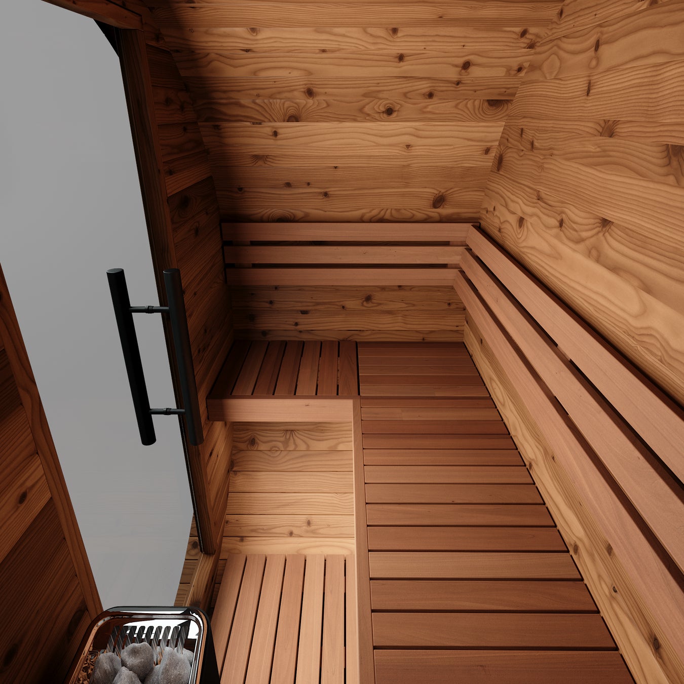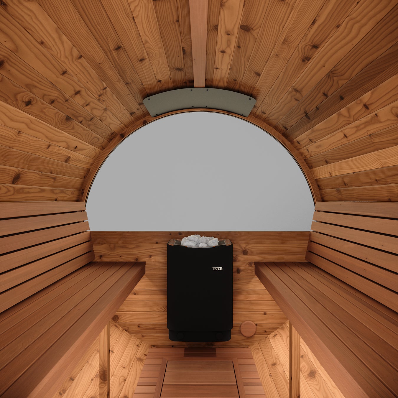 バレルサウナといえば、その樽型構造ゆえにロウリュをすると円形の天井に沿って熱気が自然に降りてくるため、極上の蒸気を堪能できるのが最大の魅力。『Homeモデル』では、こうしたバレルサウナの特性はそのままに、直径や奥行きを2m以下にすることで、設置自由度の高さを実現しています。
