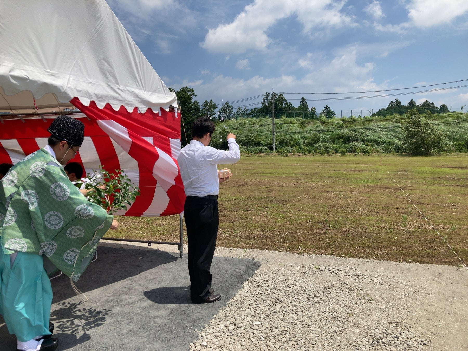 正式な拠点名称を「株式会社アクシージア 富士山麓PLC(FUJISANROKU Process & Logistics Center)」とする加工型物流センターの地鎮祭は、施工主である大和ハウス工業株式会社主催で執り行われました。富士山東口本宮 冨士浅間神社を斎主に、小山町の込山町長はじめ地元関係者および工事関係者など約30名が参列し、工事の安全を祈願いたしました。