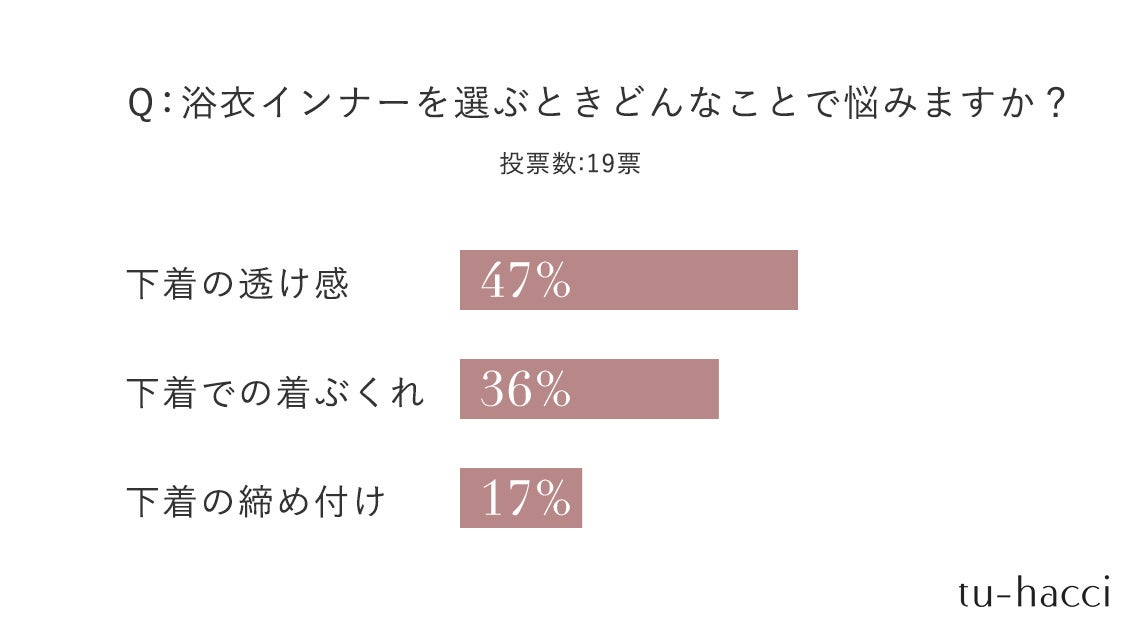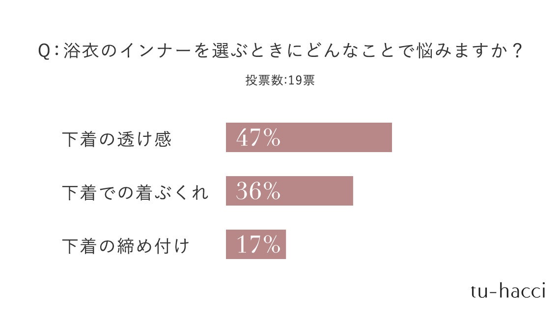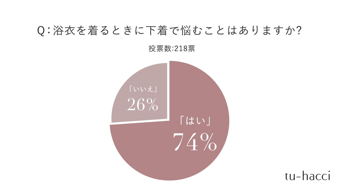 浴衣を着る際の下着に関するアンケートを、tu-hacci公式Instagramで実施。74%の方が下着選びで「悩んでいる」と回答しました。