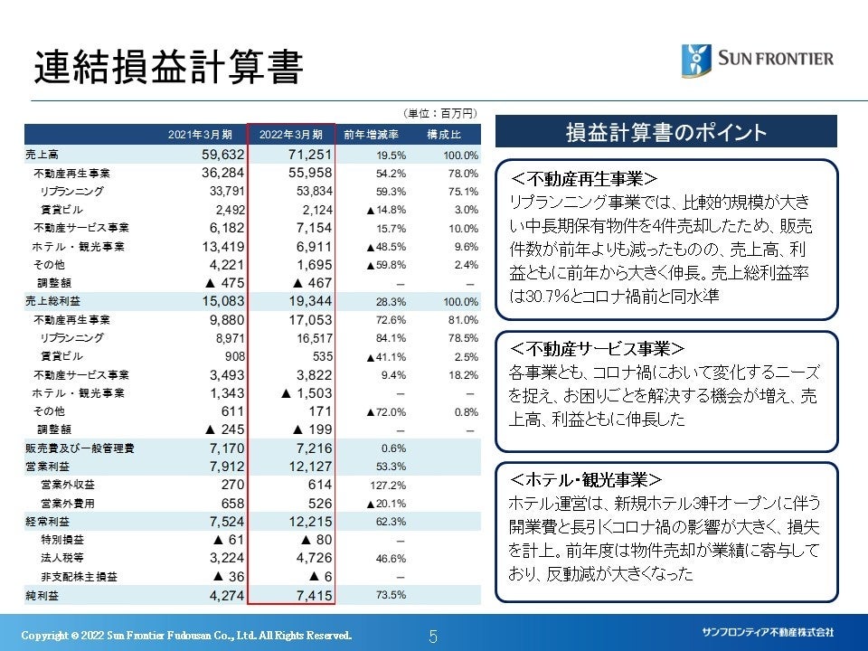2022年3月期決算を発表。不動産再生事業が業績を牽引し、利益は計画を上回る着地