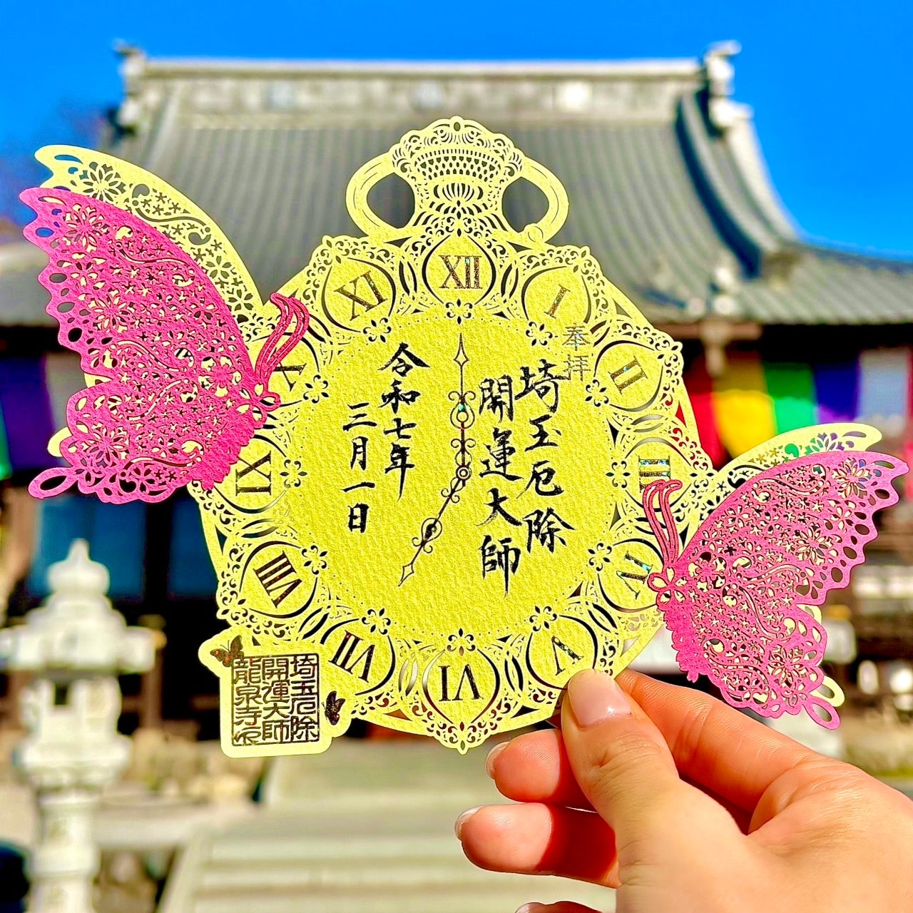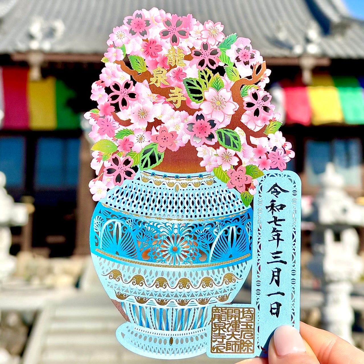 切り絵御朱印発祥の寺「埼玉厄除け開運大師・龍泉寺」にて2種類の春限定重ね切り絵御朱印『花器 ー桜ー』『時を告げる幸運の蝶』の授与開始