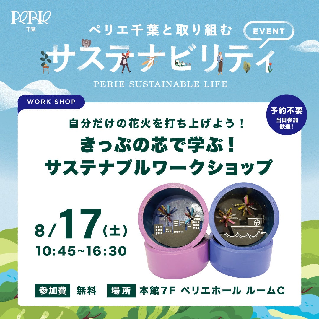 JR千葉駅直結の商業施設「ペリエ千葉」(所在:千葉市)は、JR千葉駅との協働の取り組み「ちばえきつながるプロジェクト」の一環として、2024年8月17日(土)「自分だけの花火を打ち上げよう!きっぷの芯で学ぶサステナブルワークショップ」を開催します。