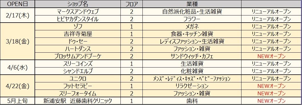 ~ 「ユニクロ」「3COINS」増床の他、3店舗がNEWオープン~