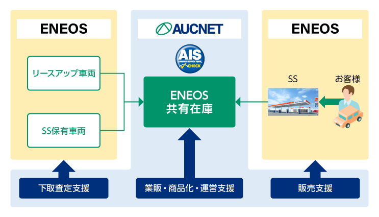 ・業販支援:ENEOSグループ内流通システムの提供、オークション売却サポート