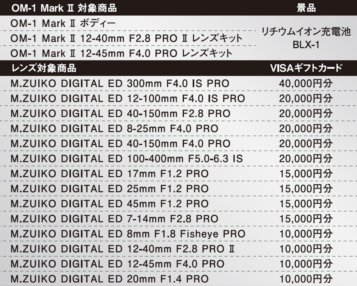 「OM-1 Mark II」購入者対象&レンズ購入者対象の2つのキャンペーンで素敵な特典をプレゼント!