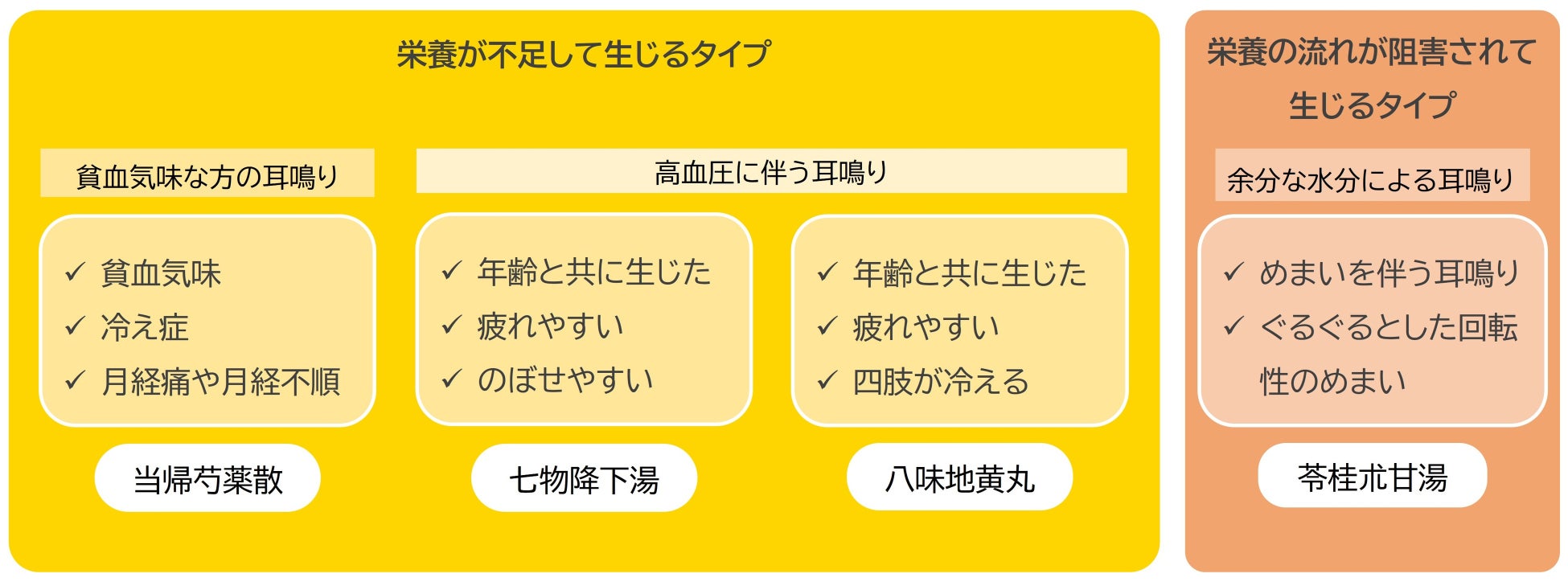 耳鳴りの原因はさまざまで、「ストレス・疲れ」や「気圧の変化」のほか、中高年以上の方は加齢や高血圧に起因するケースも考えられます。耳鳴りに対応する漢方薬は複数処方あるため、症状や自身のタイプに合わせて柔軟に選択できる点も、耳鳴りへの対処に漢方薬が選ばれている要因だと推察できます。