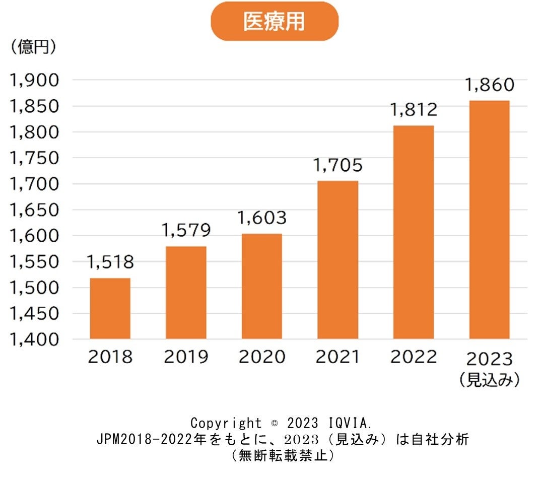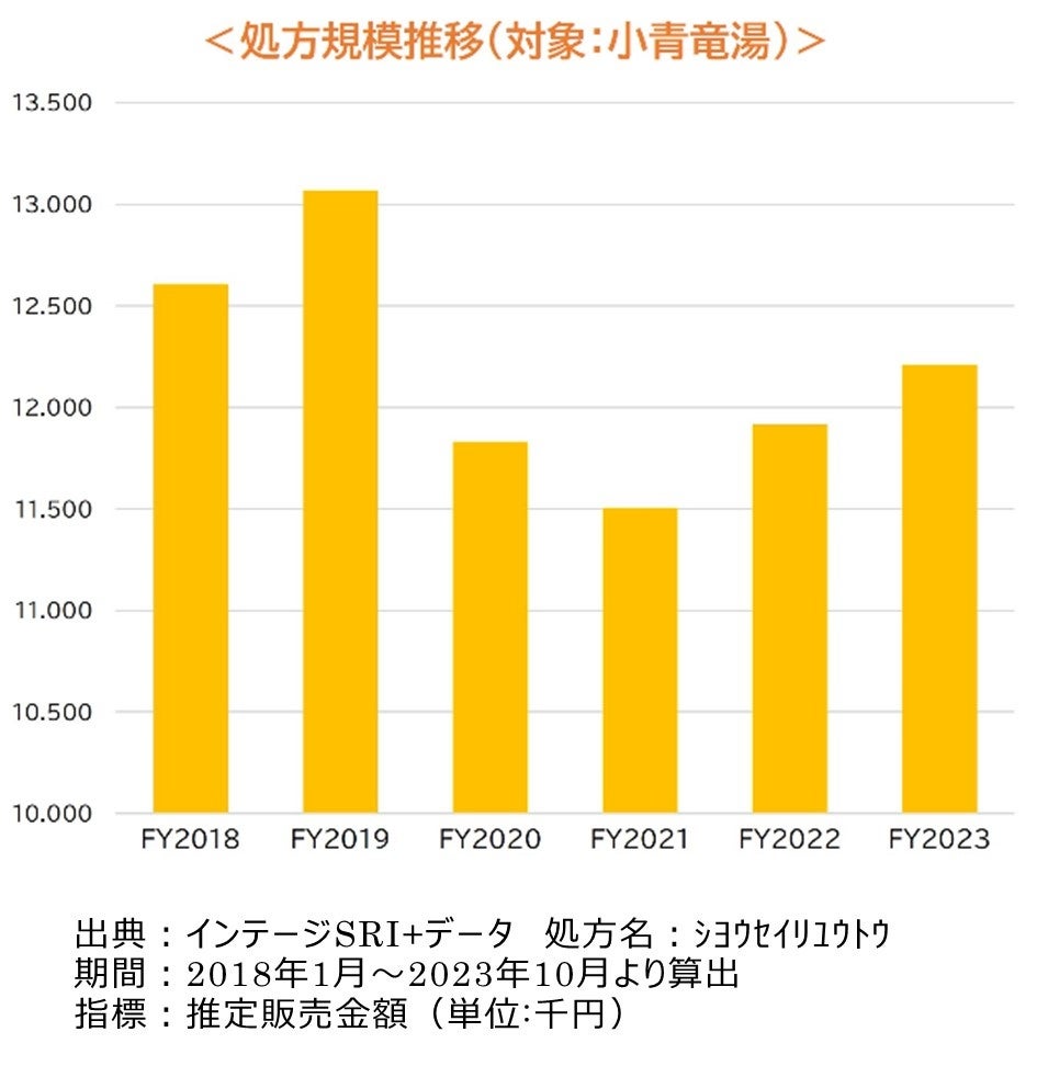 また、医療用漢方薬市場も直近6箇年で継続的に成長。2023年度は前年比103%を見込んでいます。