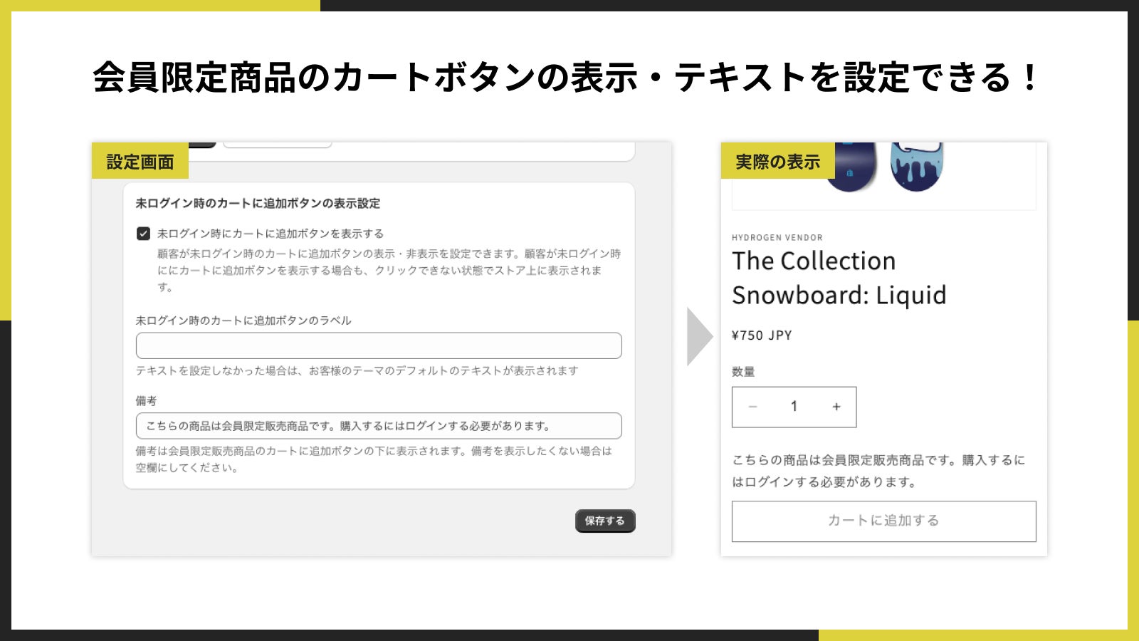 ■会員限定商品のカートボタンの表示・テキストを設定できる!
