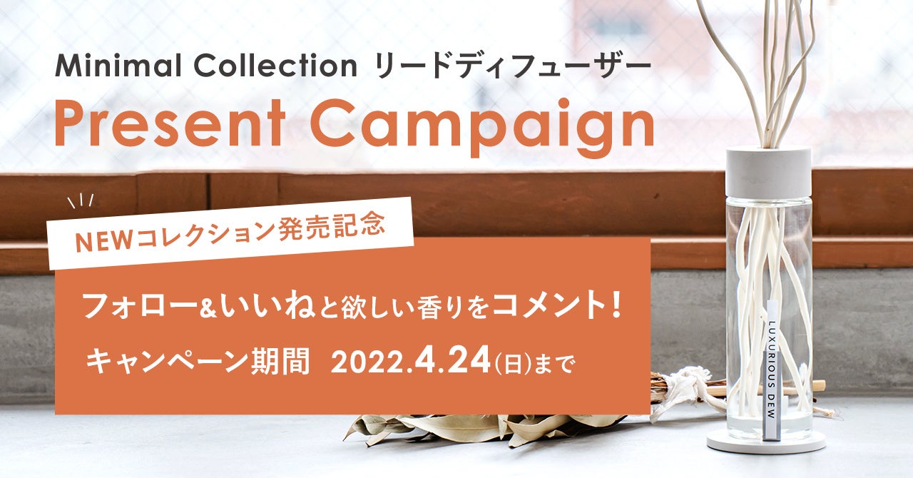 『フォロー&いいね』で海外の高級ホテルの様な香りの『Minimal Collection リードディフューザー』を抽選でプレゼント!