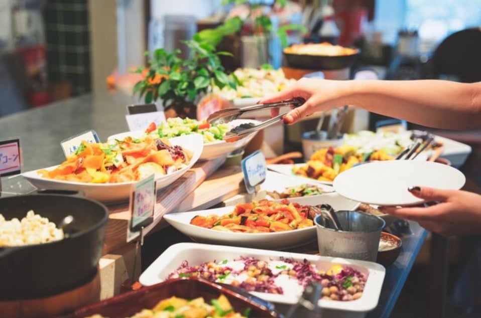 ハンバーグの付け合わせの野菜の葉や茎を使ったきんぴらや、メインメニューのステーキで使用したお肉のすじをじっくり煮込んで作った牛すじカレーなど栄養がたっぷりのヘルシーでエシカルな料理も食べ放題です。野菜の普段捨ててしまいがちな部分を活用することで食品ロスを防ぐことを心がけております。