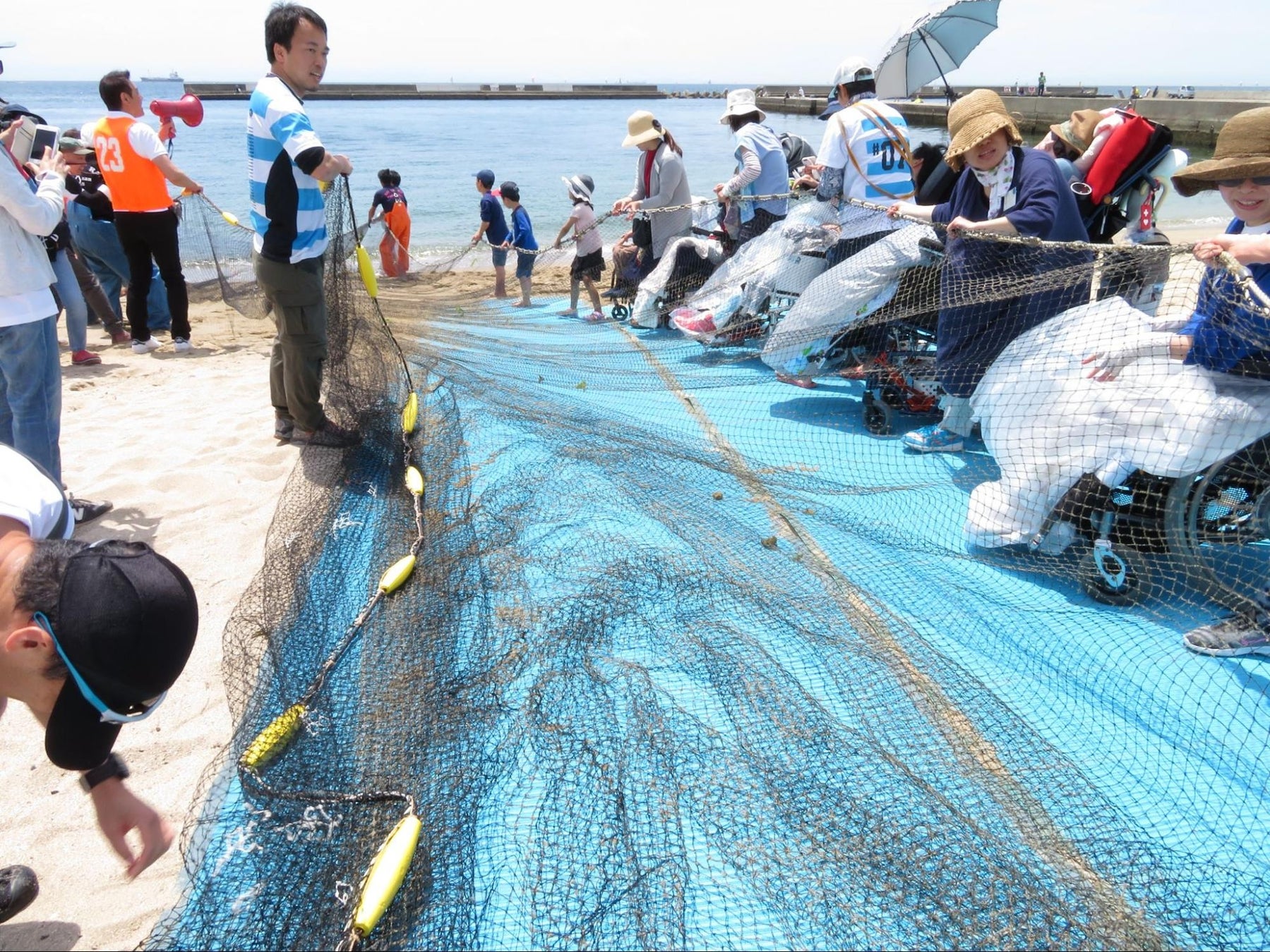 障がいや年齢を超えて、ビーチクリーンに取り組み、地引網漁に挑戦し、生命と食の価値を実感する