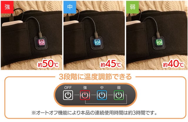 寒がりさんにピッタリ♪ 3段階温度調節!巻くだけで腰まわりポカポカ!