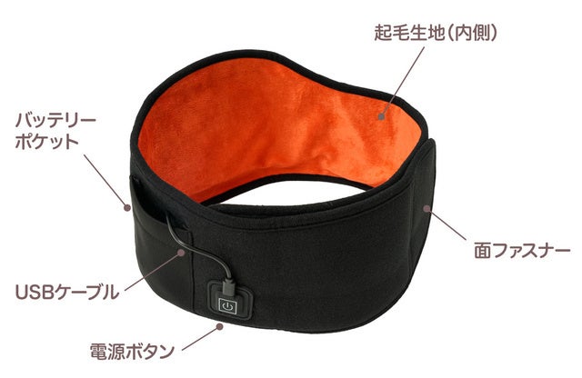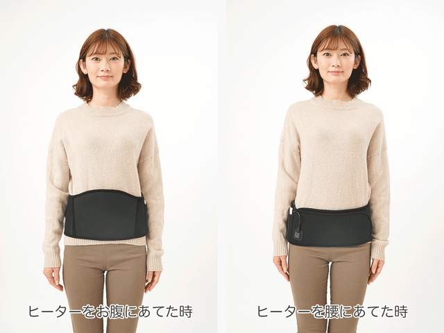 - 保温性・伸縮性に優れたネオプレン生地にヒーターを搭載した4層構造で腰、お腹を温める!