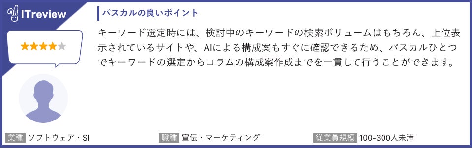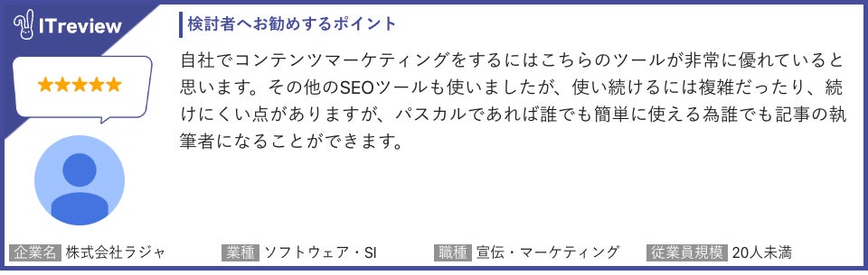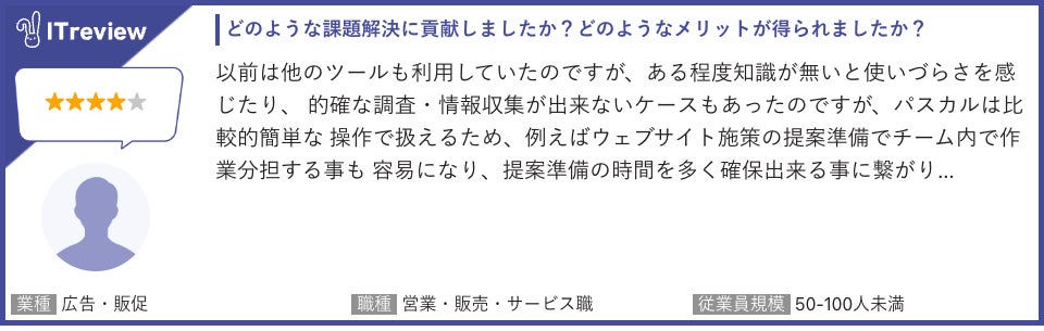 ITreviewにて、実際にパスカルをご利用いただいているお客様よりたくさんのお声をいただいております。