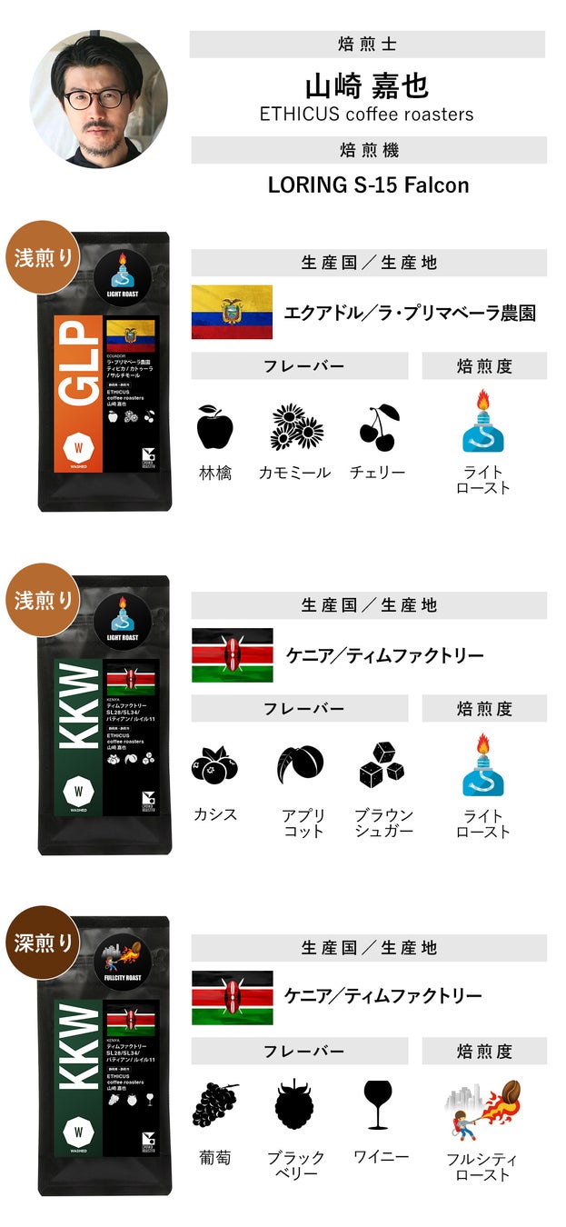 ETHICUS(エートス)山崎さん焙煎による、コーヒー3種飲み比べBOXが登場!