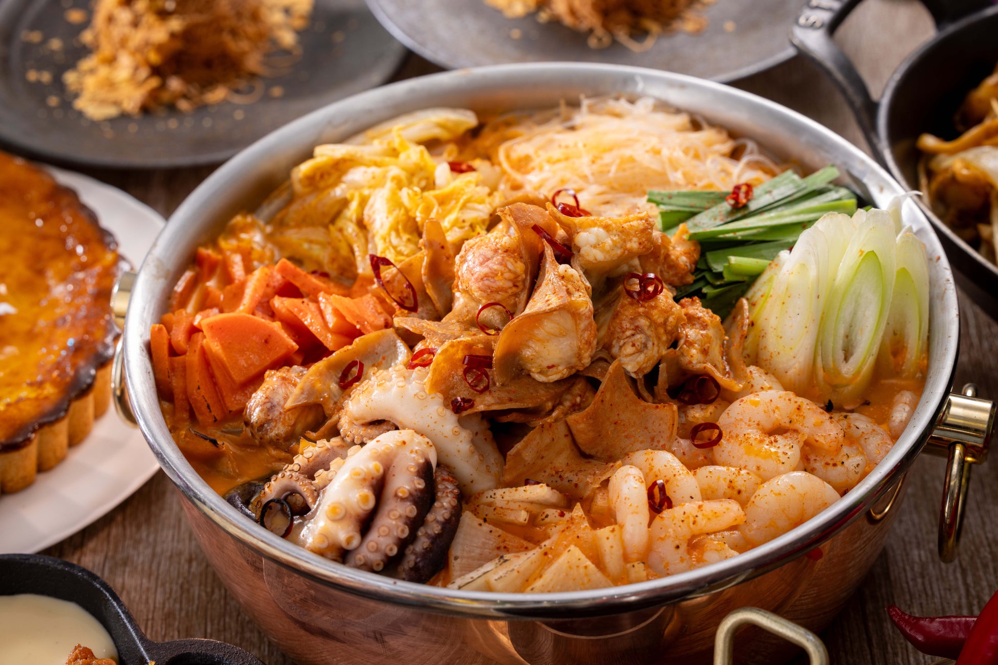 その他にも、韓国釜山名物のナッコプセ(牛ホルモンと海鮮のキムチチゲ)にたっぷりスパイスのケイジャンオイルでローストしたスペアリブ、ソフトシェルのシンガポールチリクラブなど。
