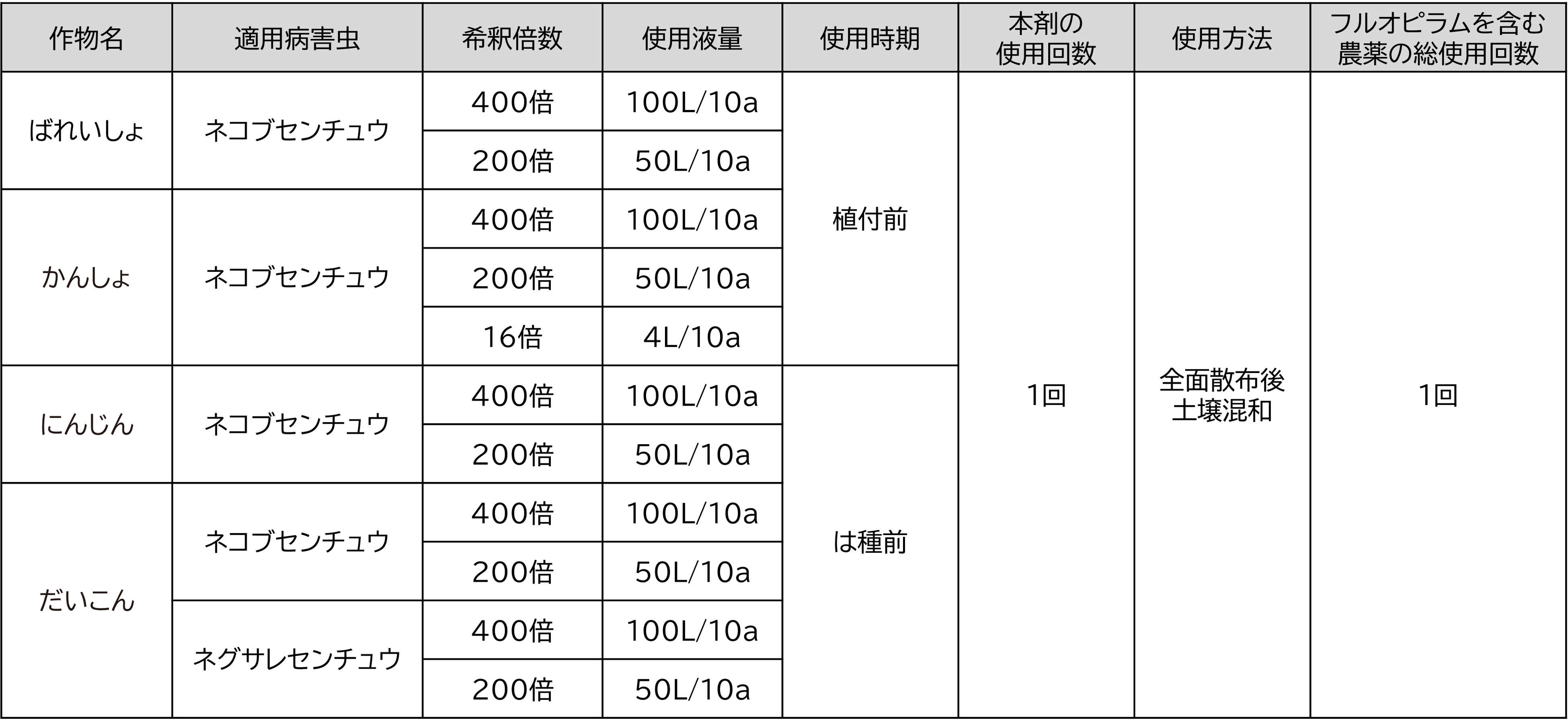優れたセンチュウ防除効果と軽量化を実現したフロアブル製剤