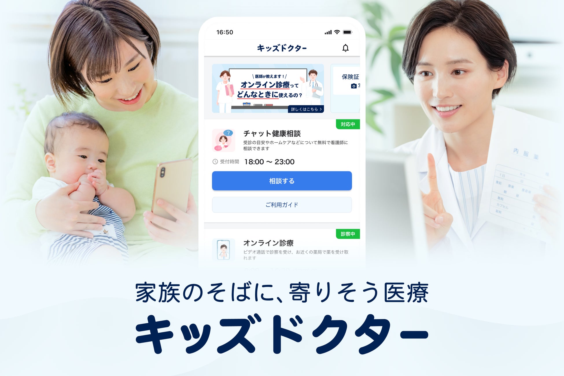 キッズドクター(https://kids-doctor.jp)は、子どもの健康や病気についてご不安を抱える保護者の方に「医師とつながれる安心」を届けるために生まれた、子どものオンライン診療アプリです。早朝や夜間、休日でも、全国からスマートフォンで医師の診察を受けることができます。オンライン診療の他に、看護師によるチャット健康相談もご利用いただけます。