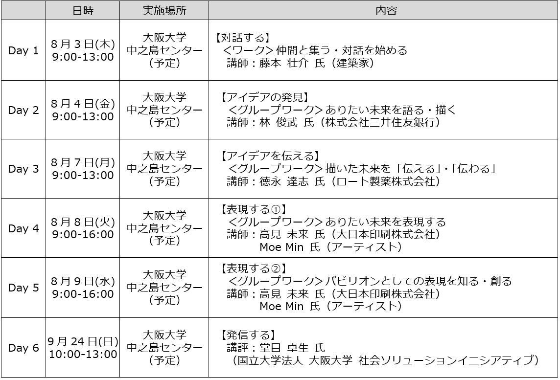 また、大阪・関西万博で会場デザインプロデューサーを務める建築家 藤本壮介氏や「TEAM EXPO 2025」共創パートナー企業の担当者など、各プログラムに登壇する計5名の講師から表現方法やチームワークの大切さなどを学びます。