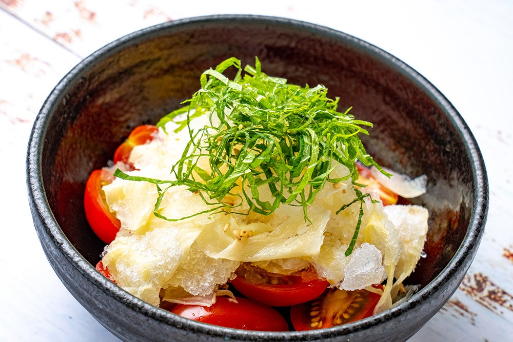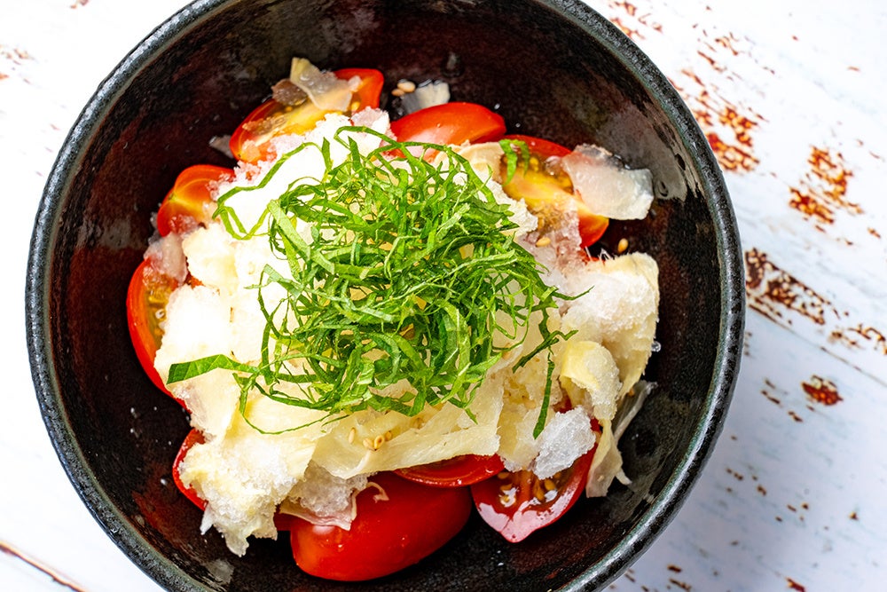 糖度8度以上の北海道産プレミアムミニトマト「純あま」のフルーツのような甘さとガリのさっぱり感がやみつきになる一品