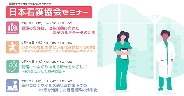 看護における医療情報の活用、新型コロナウイルス感染症対応や母子支援におけるICT活用、業務効率化等、多彩なテーマでお送りいたします。