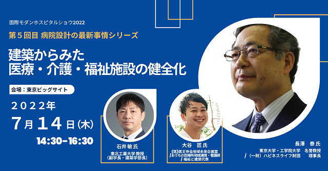 【リアル展示会「国際モダンホスピタルショウ2022」最新情報!】毎年好評の講演「病院設計の最新事情」シリーズ第5回テーマは「建築からみた医療・介護・福祉施設の健全化」に決定! 講演概要を本日初公開!