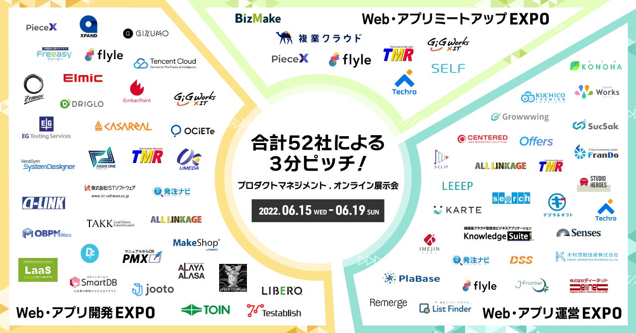 6月15日〜19日開催「プロダクトマネジメント.オンライン展示会」注目の72社が3分ずつ3日間にかけてLIVE配信!