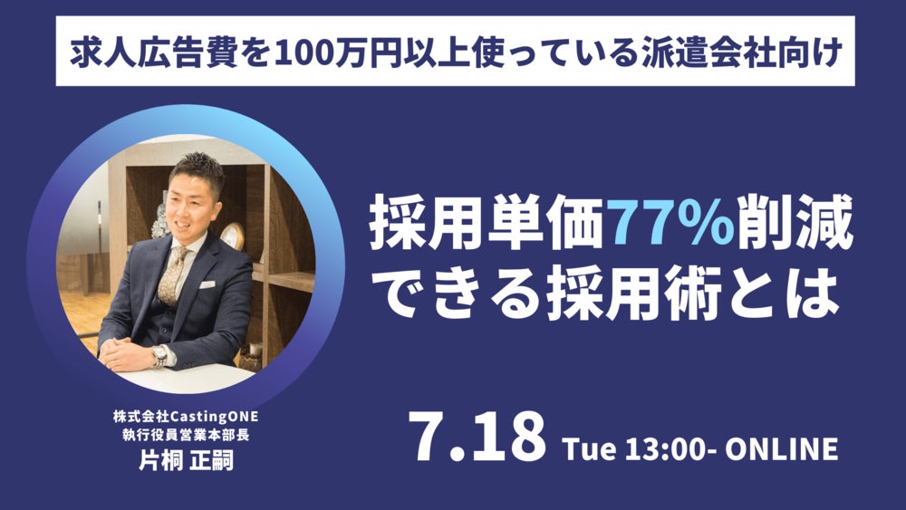 【広告費100万円以上使っている派遣会社様向け】採用単価77%削減できる採用術とは