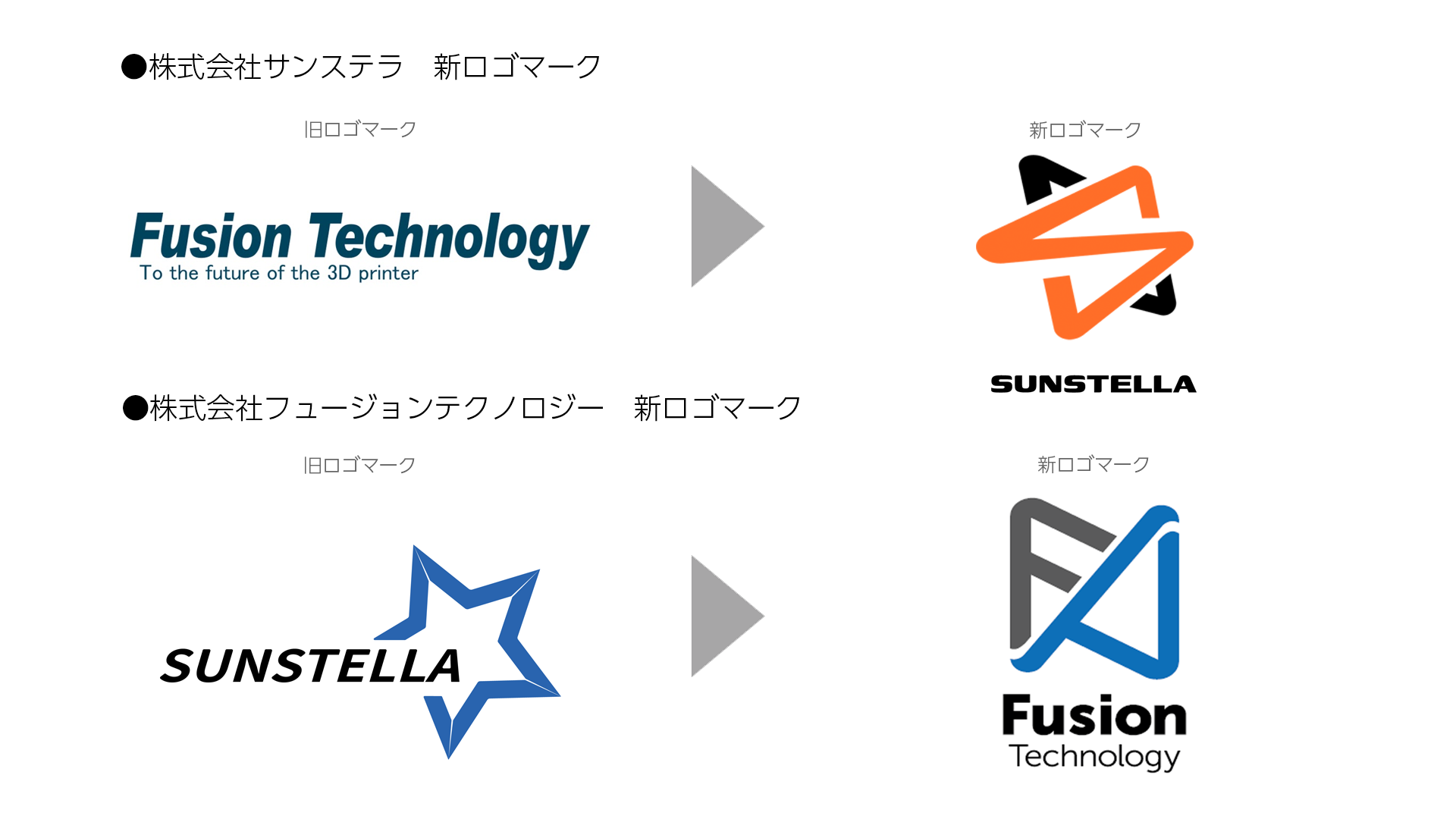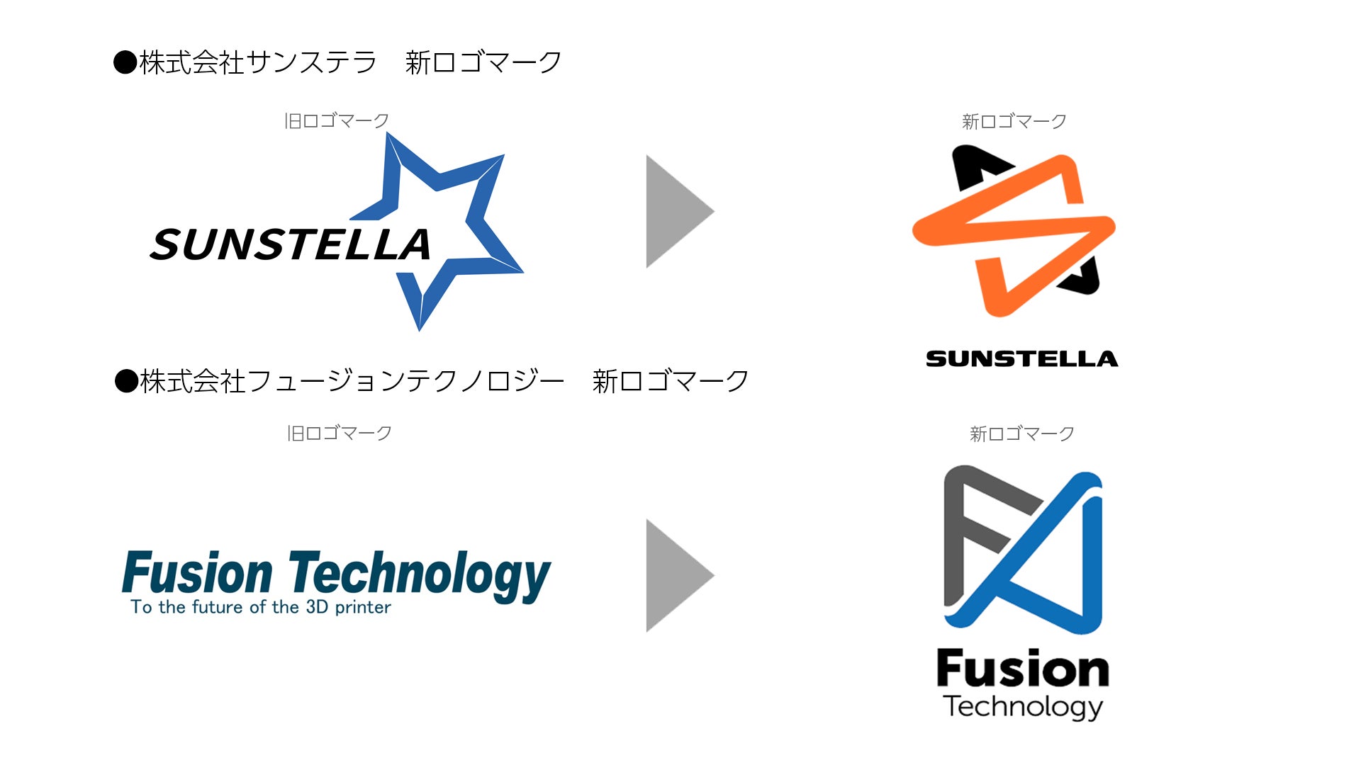 3Dプリンター販売のサンステラグループ、株式会社サンステラと株式会社フュージョンテクノロジーがブランドロゴを変更いたします。