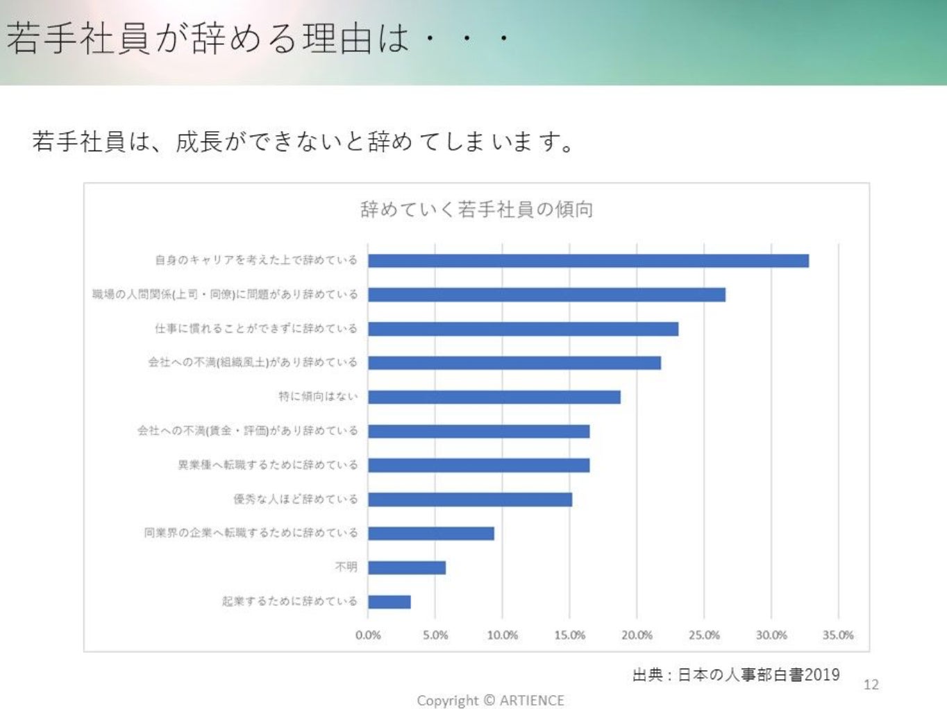 ・ 数値で見る若手社員の離職理由と基礎知識
