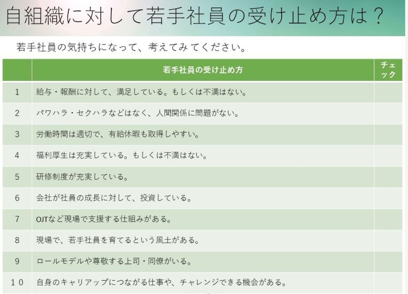 ・若手社員の傾向を知れる