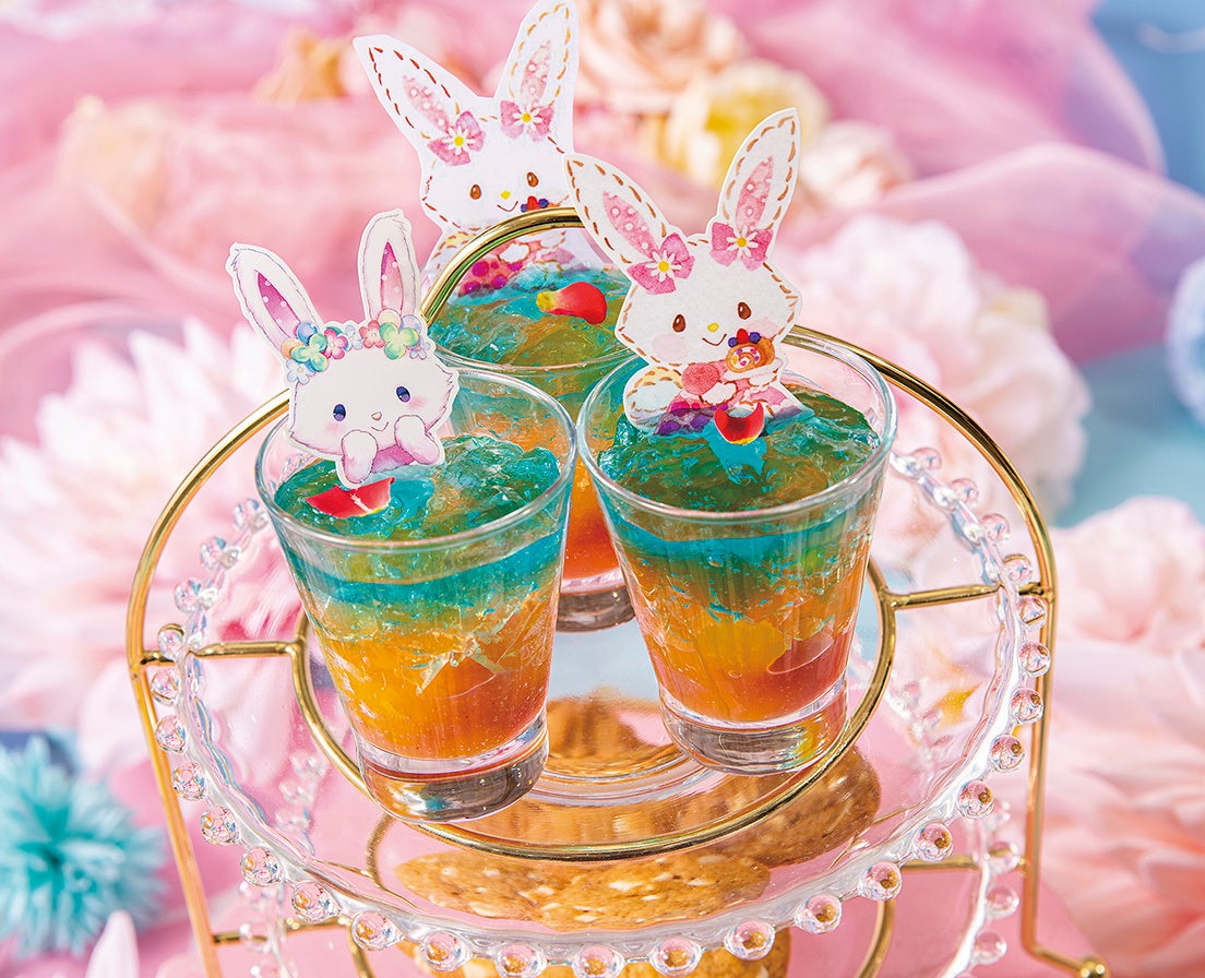この度の企画は、世界中から愛されている「ハローキティ」と「ウィッシュミ―メル」が「ありがとう」をテーマにウィッシュミーメルが住んでいるメルシーヒルズのお花や虹をイメージしたデザートやハローキティの顔が描かれたフルーツサンドなど、とっても可愛いデザートとお料理を土日祝日のディナータイム限定で10月30日(日)まで展開いたします。
