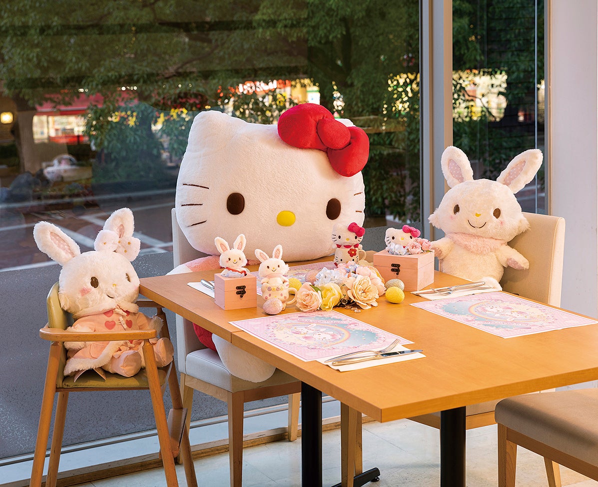 また特別企画としてハローキティとウィッシュミーメルの大きなぬいぐるみと一緒に楽しめる特別シートを1日2テーブル限定で販売いたします。お気に入りの人形や「推し」を置いて撮影を楽しむことができます。