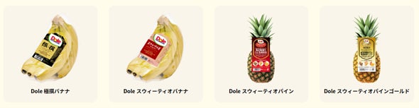 Dole 極撰バナナ、Dole スウィーティオバナナ、Dole スウィーティオバナナ ミニ、Dole スウィーティオパイン、Dole スウィーティオパインゴールド、 Dole スウィーティオパインゴールド ミニ