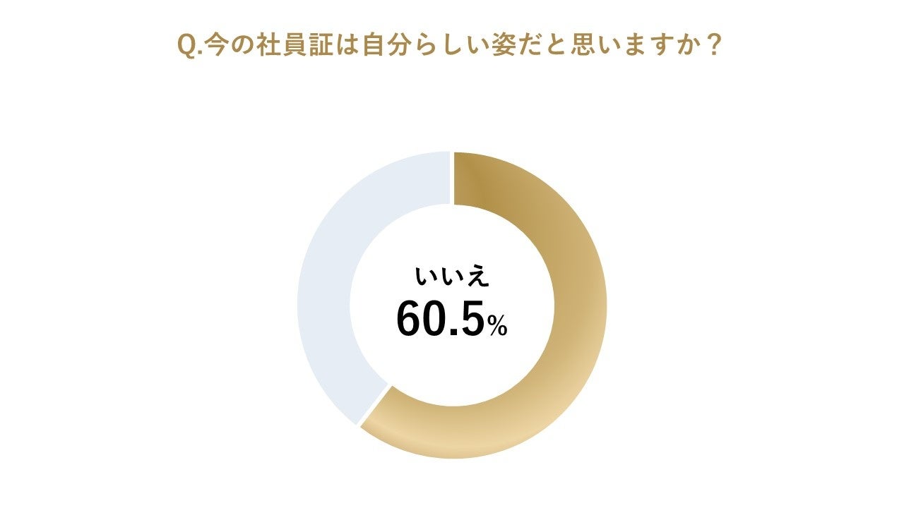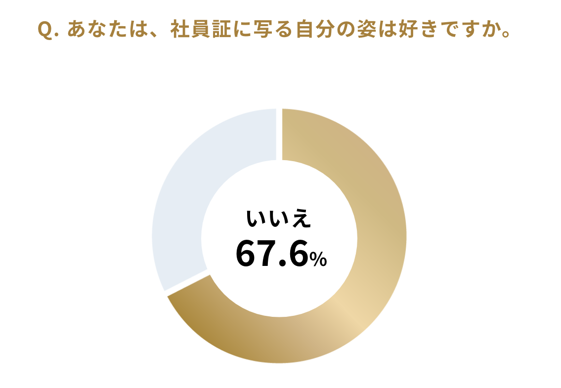 さらに調査の中では、自分を証明する「社員証」に関しても質問。「今の社員証は自分らしい姿ではない」と回答した社会人が約6割(60.5%)に昇った他、「社員証に写る自分の姿は好きではない」と回答した社会人が約7割(67.6%)に昇り、自分を証明するはずの「社員証」が「自分らしくない」と感じ、その「社員証」に満足できていない人が多いことも、調査結果から見受けられました。