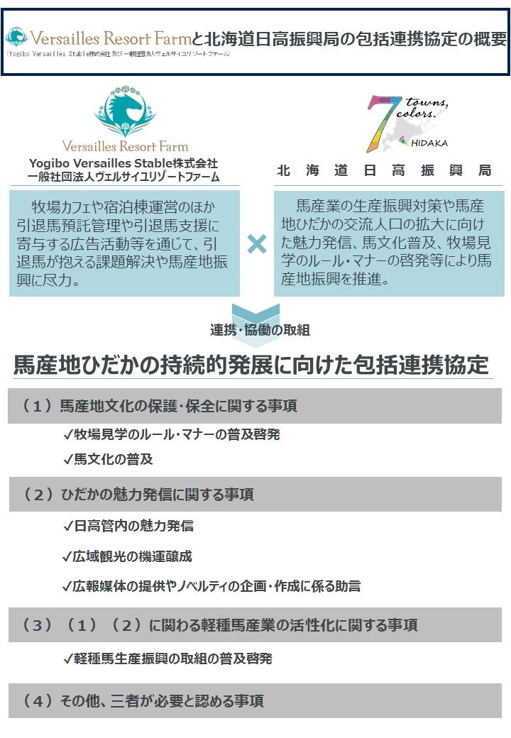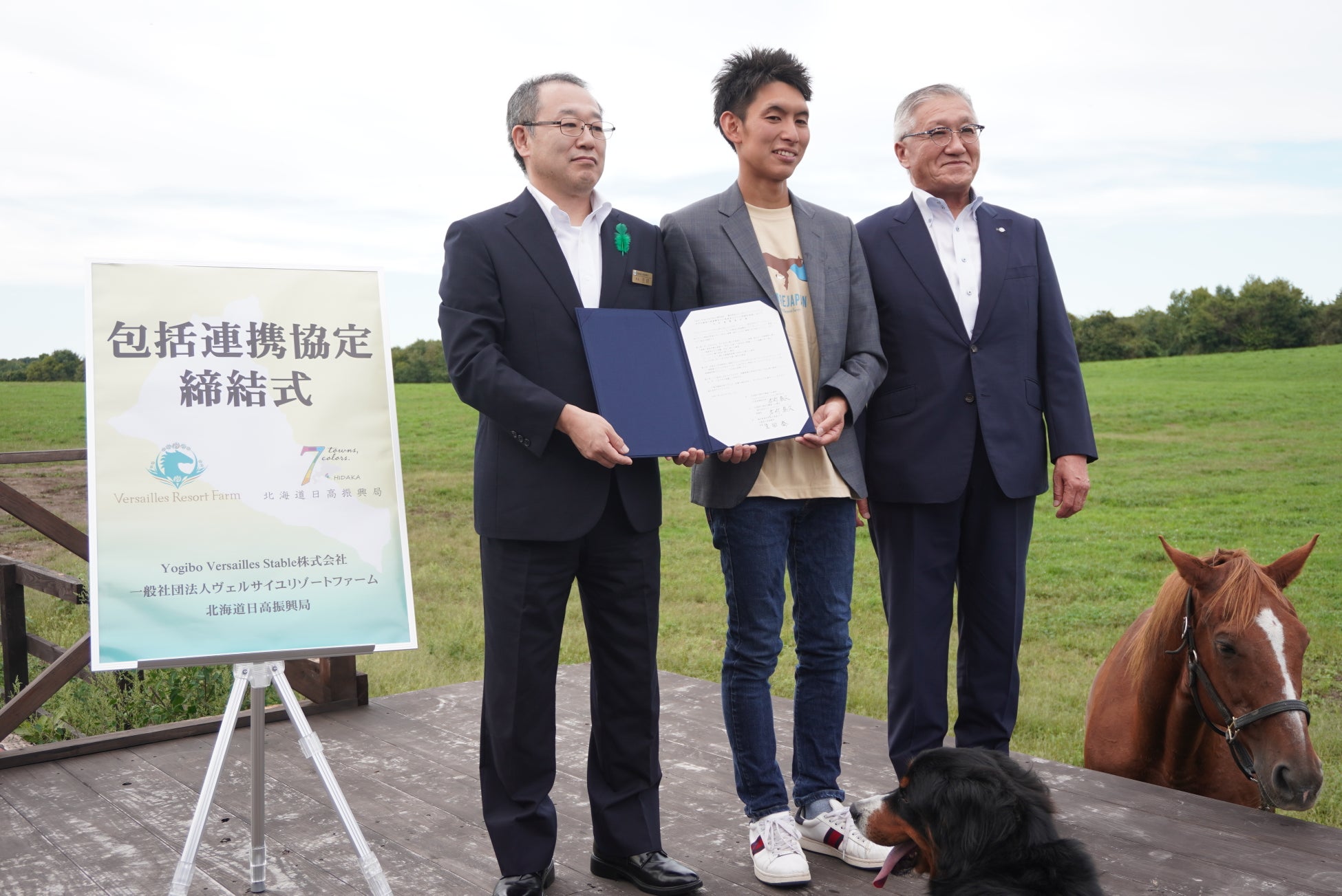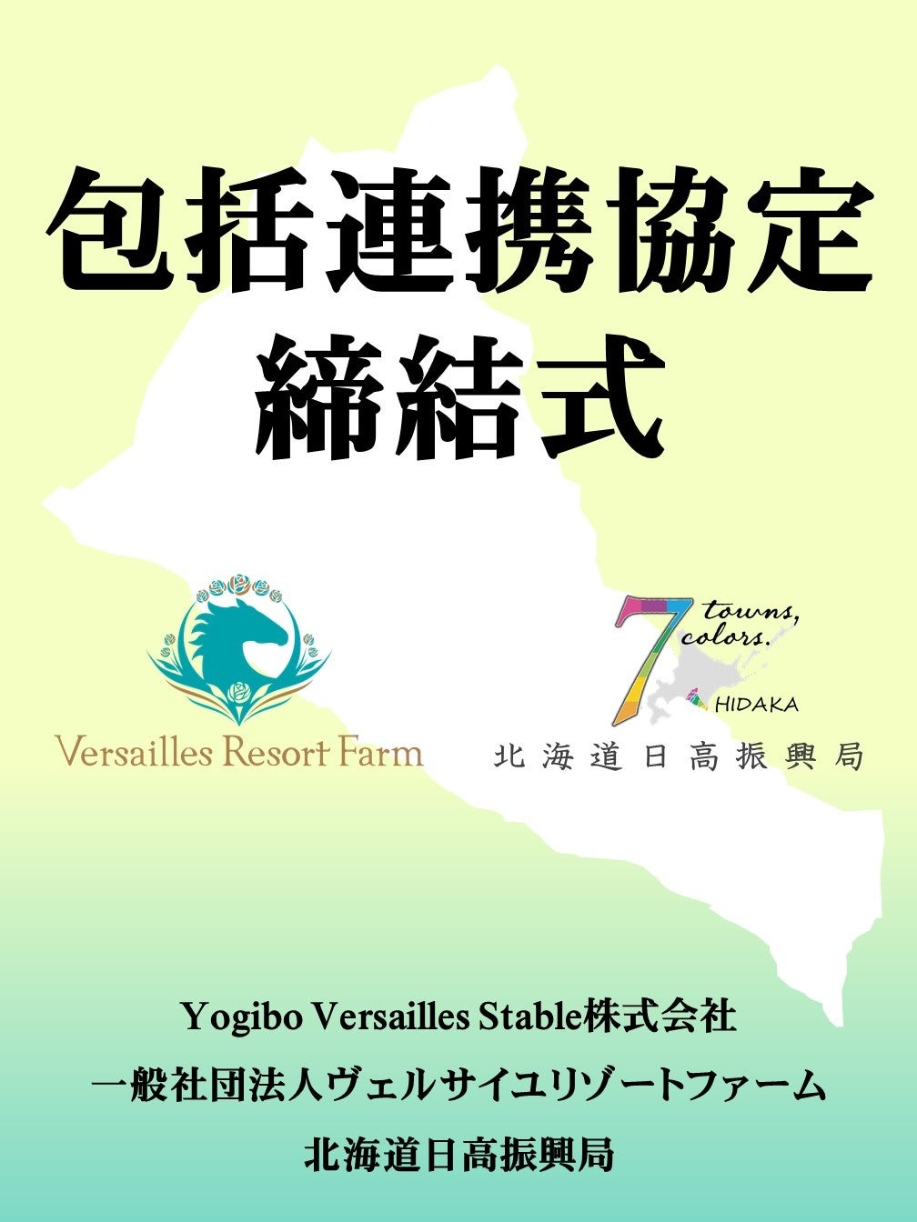Yogibo Versailles Stable(ヨギボー ヴェルサイユ ステイブル)株式会社、一般社団法人ヴェルサイユリゾートファームと北海道日高振興局が包括連携協定を締結しました。