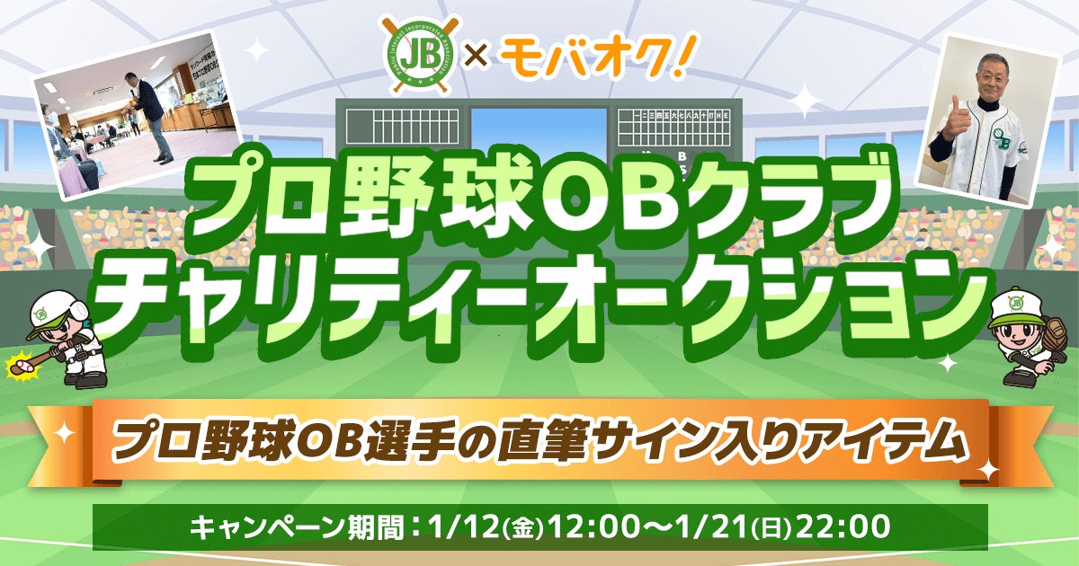 株式会社モバオク(本社:東京都渋谷区、代表取締役社長:生田目 知之、以下モバオク)が運営するオークションサービス「モバオク」にて、公益社団法人全国野球振興会(所在地:東京都墨田区、理事長: 八木澤 荘六、以下日本プロ野球OBクラブ)が実施する「プロ野球OBクラブチャリティーオークション」を2024年1月12日(金)から1月21日(日)まで開催します。
