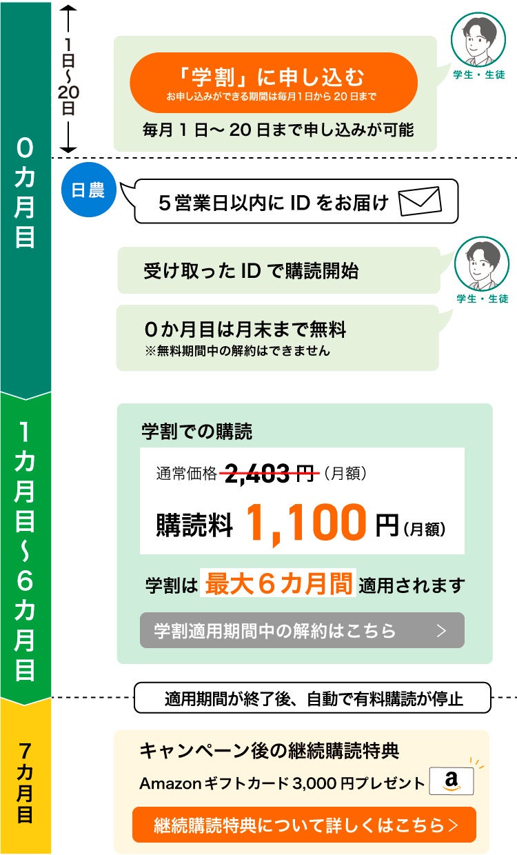 学生・生徒の皆さま ※電子版を初めて有料購読する方に限ります。 |