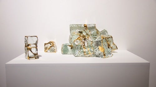 ガラスブロックに金継ぎ、サイズ可変、2025