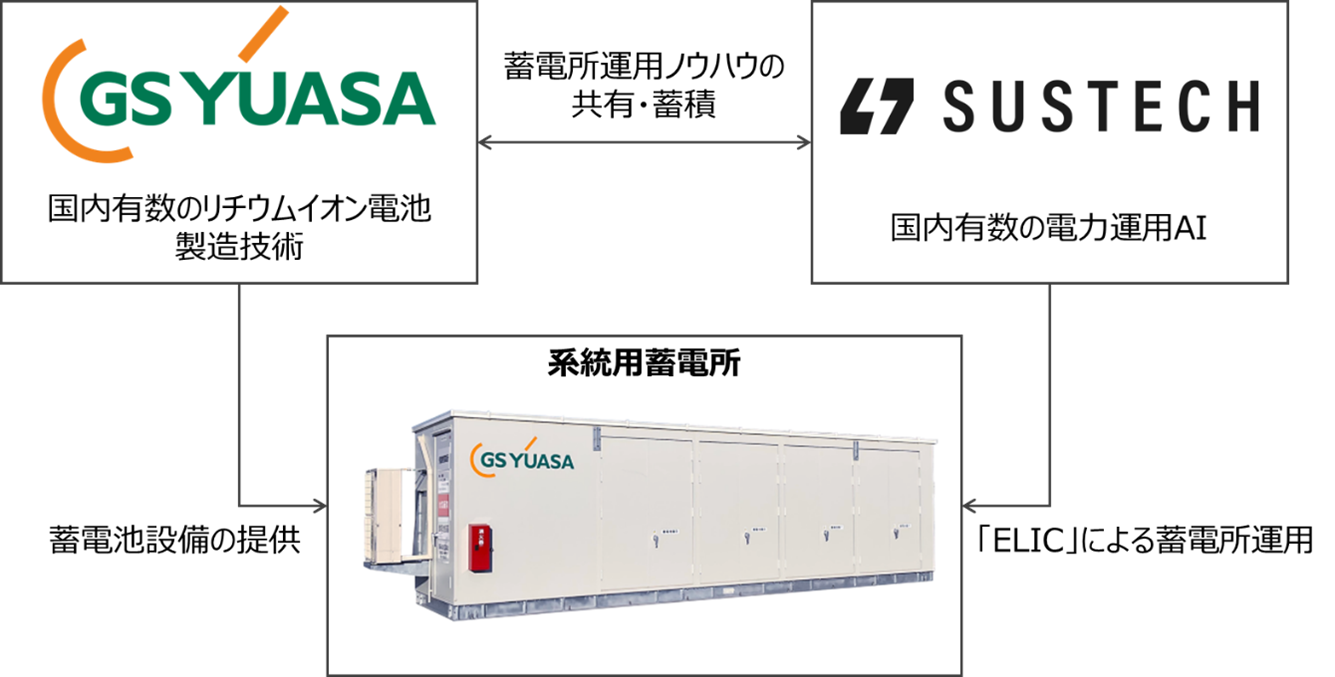 GSユアサとSustechが共同で系統用蓄電所の事業開発を開始