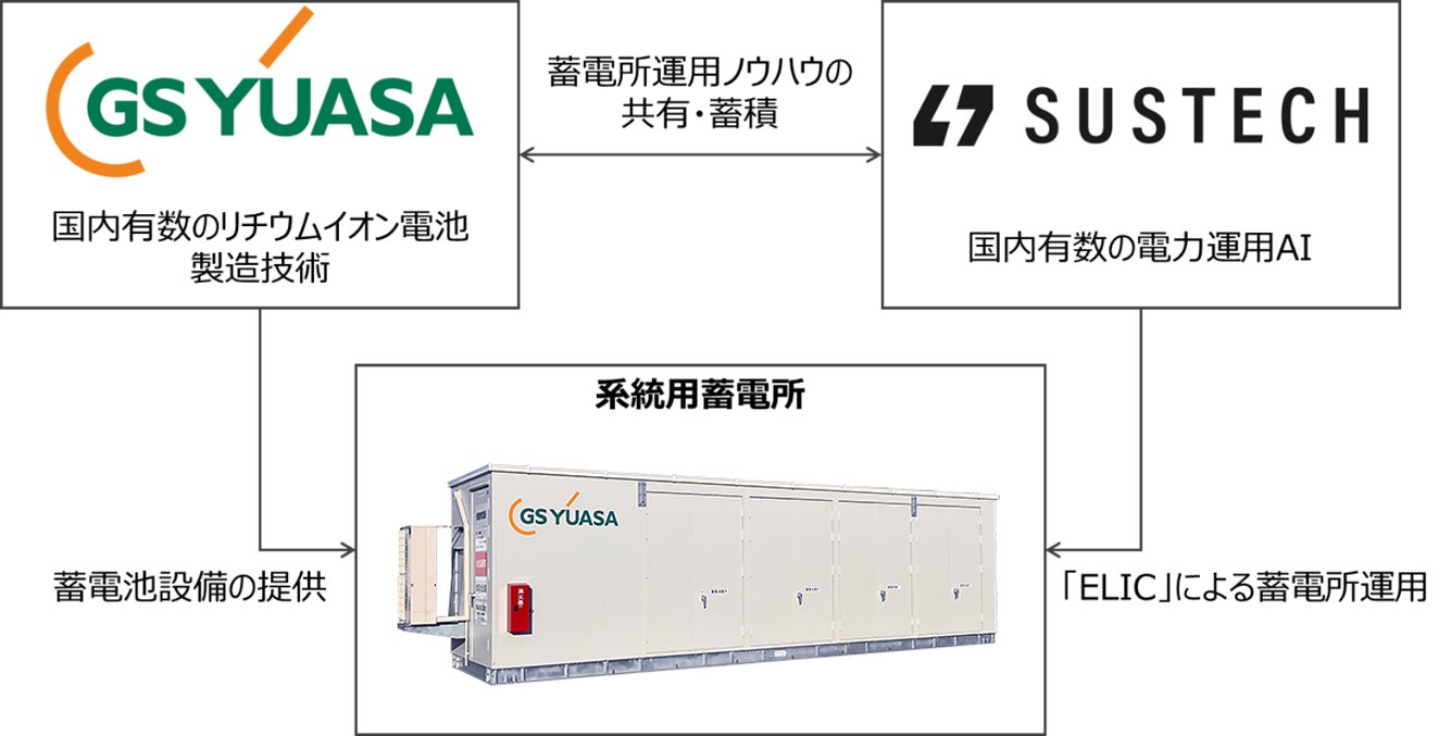 本共同事業は、国産蓄電池メーカーとして蓄電地市場を牽引するGSユアサと、世界最高水準のAI技術を有する電力運用プラットフォーム「ELIC」を開発・運用するSustechの技術を融合させた取り組みです。両社の強み・ノウハウの共有を通じて、国産技術に立脚した系統用蓄電事業のさらなる発展を目指します。
