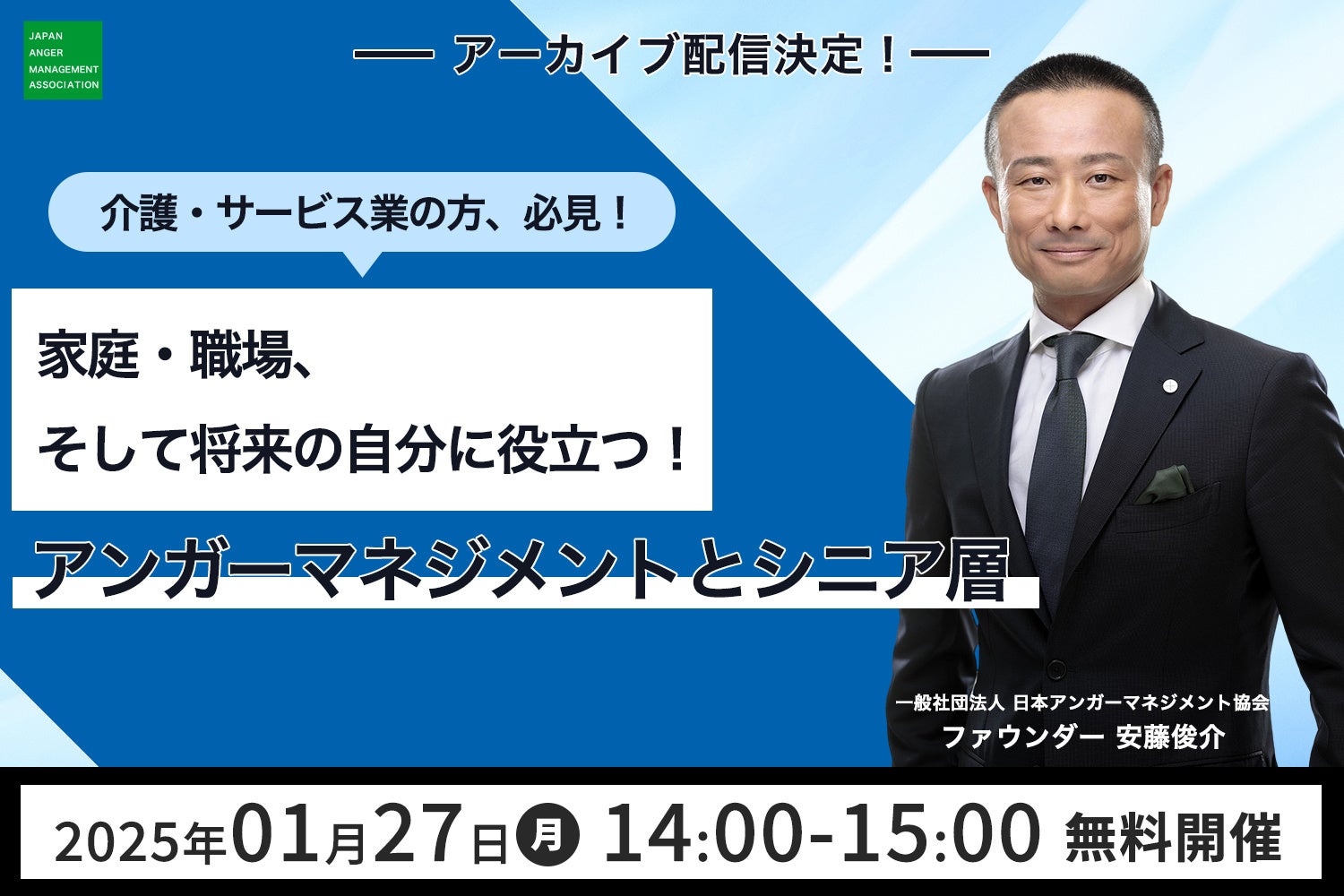 【介護職員の心を守る!ストレス軽減に繋がる実践セミナー】オンラインセミナー「家庭、職場、そして将来の自分に役立つ!アンガーマネジメントとシニア層」、1月27日(月)アーカイブ配信決定!