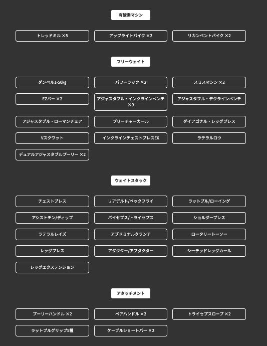 この価格で?驚きの充実設備|本格マシン40台以上を完備