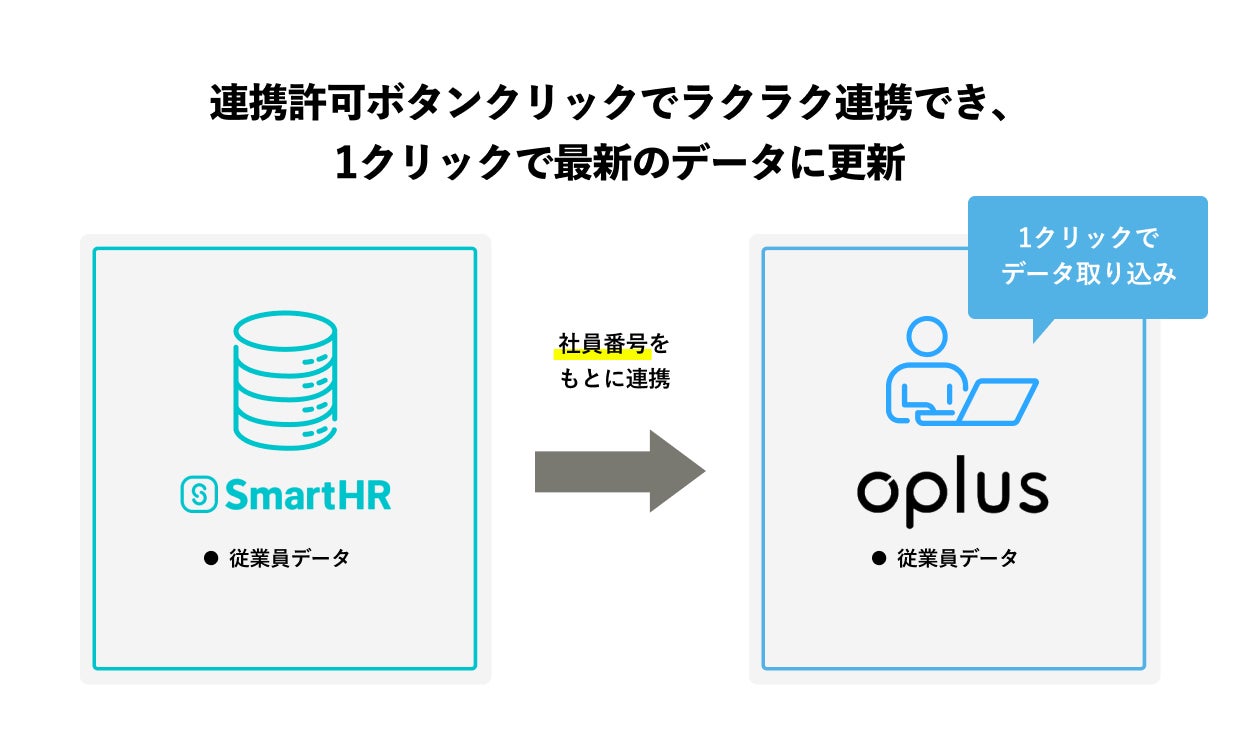 本連携によって、SmartHRの「従業員データ」から、oplusの「スタッフ情報」を自動生成することが可能になります。