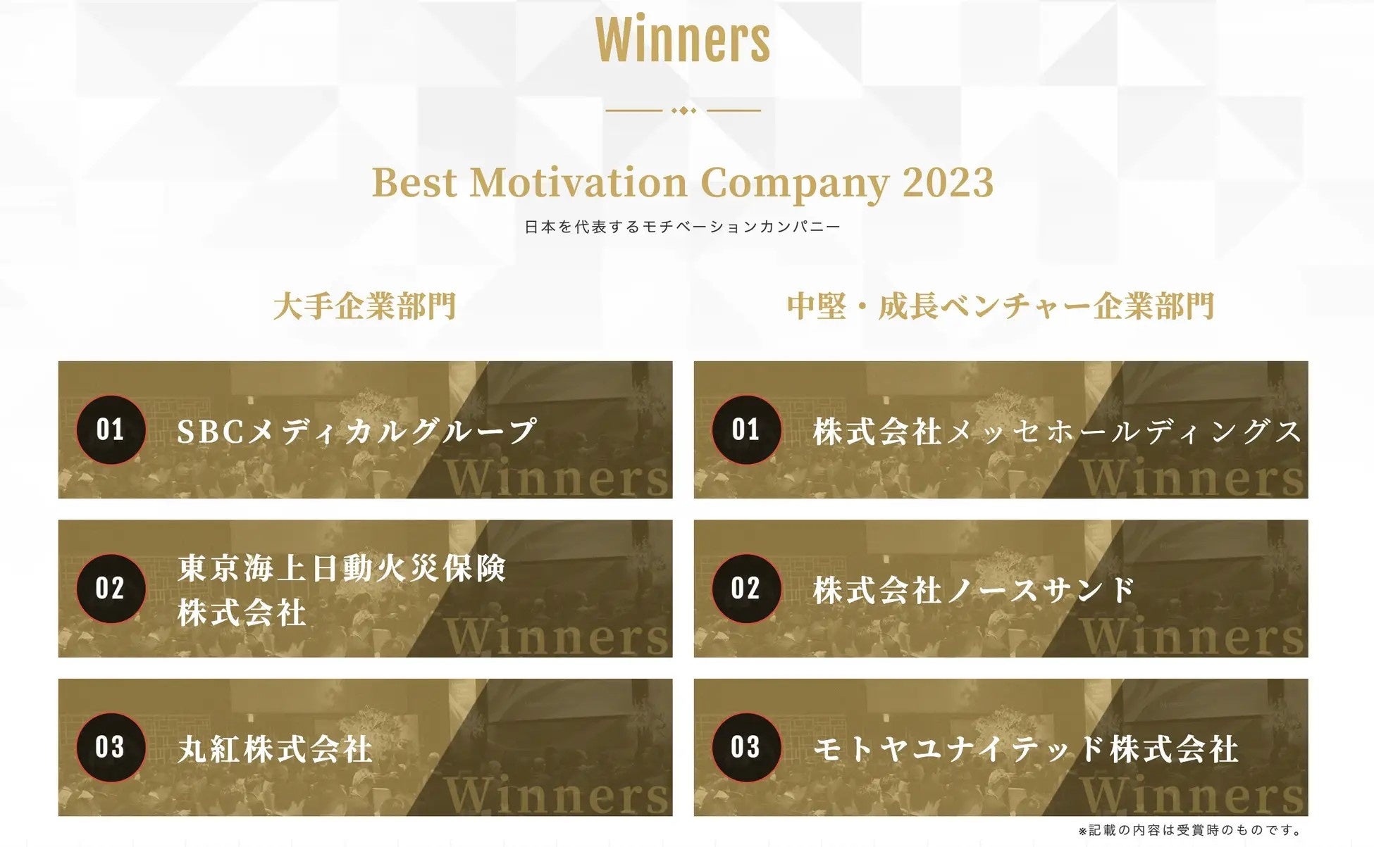 SBCメディカルグループは、株式会社リンクアンドモチベーション(本社:東京都中央区、代表取締役会長:小笹 芳央、証券コード:2170、以下リンクアンドモチベーション)が発表した、「ベストモチベーションカンパニーアワード2023」を受賞いたしましたので、お知らせいたします。