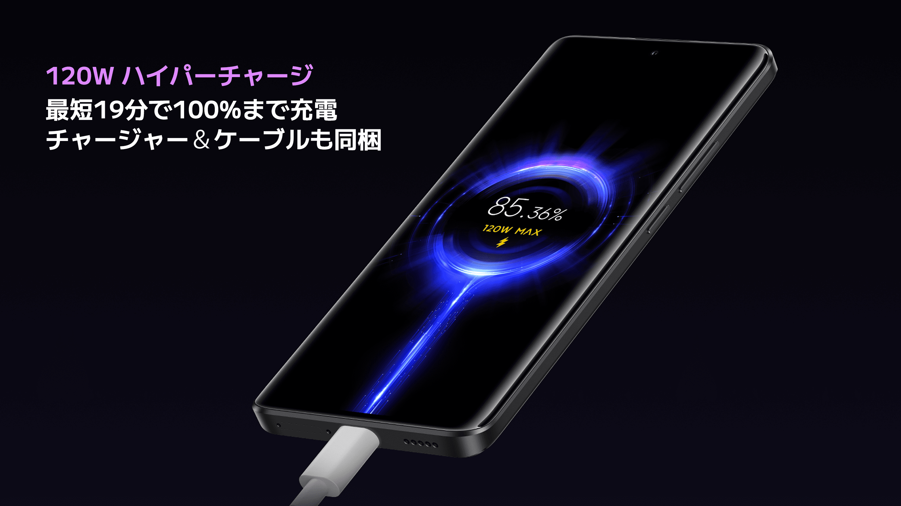 ※同梱の充電器利用、画面消灯・充電速度のブースト設定時。 1~100%までの最短充電時間。充電時間は使用環境等により異なります。