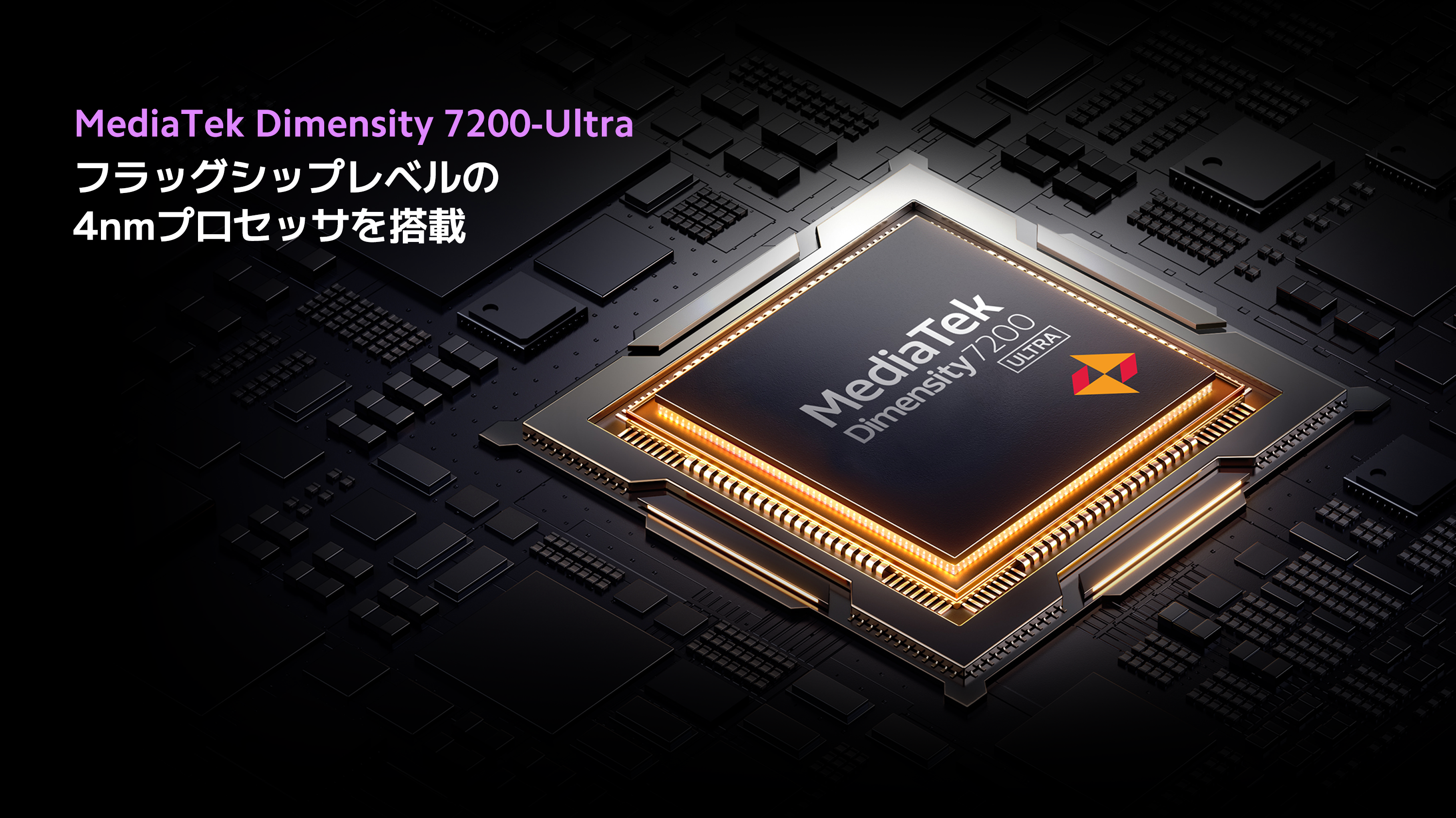 最先端のAIイメージング機能やゲーミングの最適化のほか、省電力性も兼ね備えた5Gスマートフォン向けCPU 「MediaTek Dimensity 7200 Ultra」を搭載。高画質のゲームや映像をストレスなく長時間楽しめます。